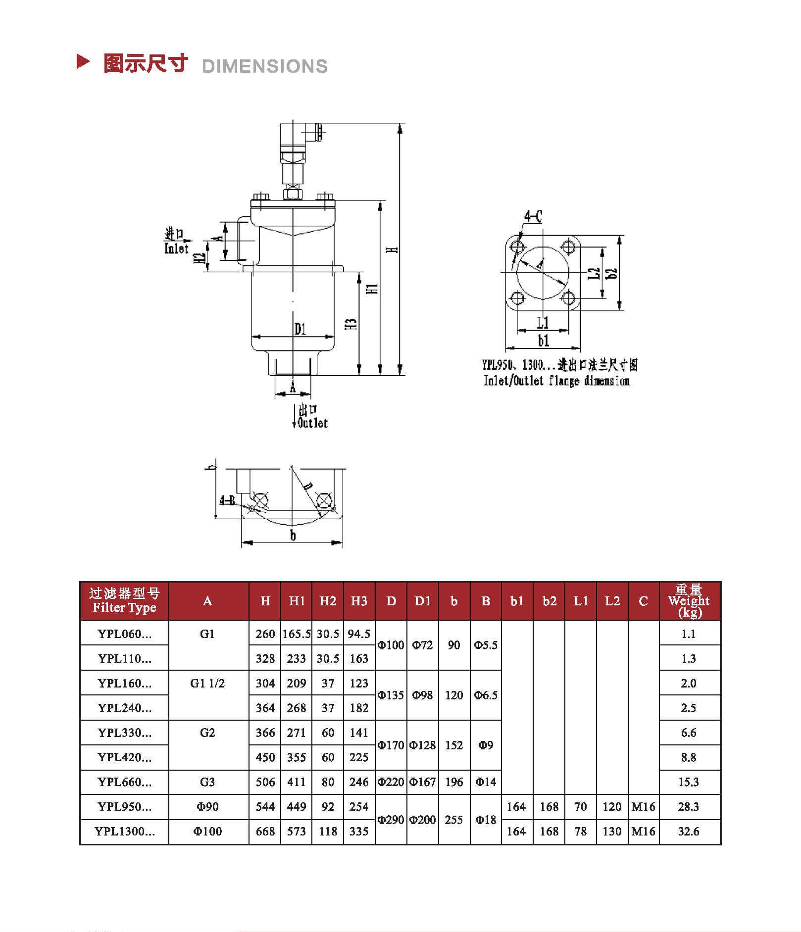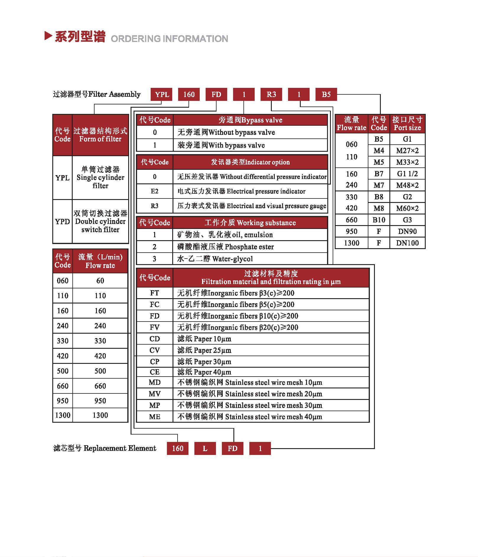 注:*为过滤精度,若使用介质为水—乙二醇,公称流量160L/min,过滤精度10μm,带CYB—I型发讯器,则过滤型号为RF•BH-160×10Y,滤芯型号为HL00160R010BN/HC。